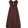 Women Cami Dress Solid Color Sleeveless Tie-Up Front Backless Dress Long Dress Summer Casual Dress