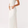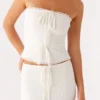 Summer outfit for women in solid colors; Women’s bandeau with drawstring front, strapless, crop length; Women’s skirt with elastic waist and drawstring, ankle length to show off your charming curves