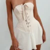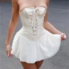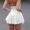 Women Summer Dress Criss-cross Bandage Strapless Pleated Mini Dress Party Club Vintage Sexy Fairy Dresses