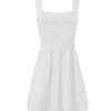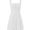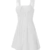 Womens Summer Flowy Dress Sleeveless Square Neck Tie-up Front Short Tank Dress Casual A-line Dress
