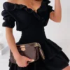Women Summer White Dress Puff Short Sleeve Off Shoulder Ruffle Layered Dress Bohemian Y2K Aesthetic Dresses Female
