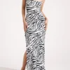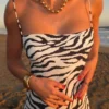 Women’s Zebra Print Cami Dress Sleeveless Tie Backless Bodycon Long Dress Summer Beach Dress